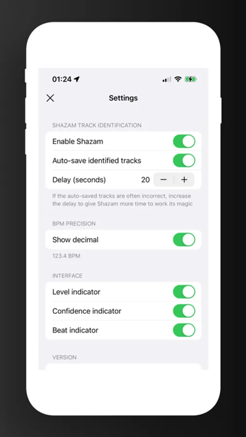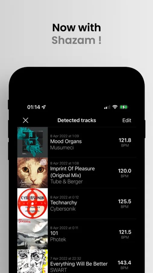 - Detection history list: keep track of your detections over time, complete with Shazam track IDs and BPM (iOS 15+)