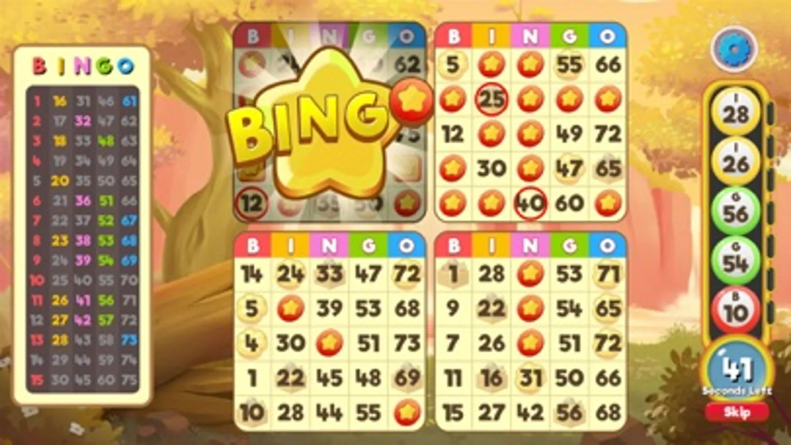 Relax with free bingo games. You can choose between 2-card bingo or 4-card bingo.