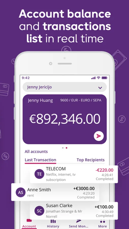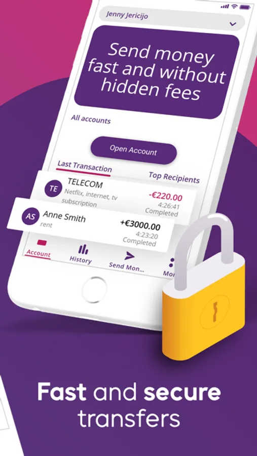 - Send a transfer (Euros only) to anyone in the EEA from your smartphone;