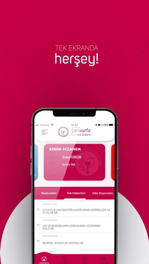 Türk Eczacılar Birliği 27.Bölge Şanlıurfa Eczacı Odası üyelerine özel duyurulular ve eczane işlemleriyle ilgili mobil uygulama