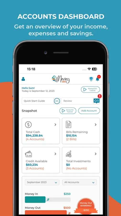 With MoneyCEO, you can see all of your accounts in one place. Get an overview of your income, expenses and savings. Manage your bank accounts, 401k, IRA, investments, stocks, and even debt, all on our dashboard.