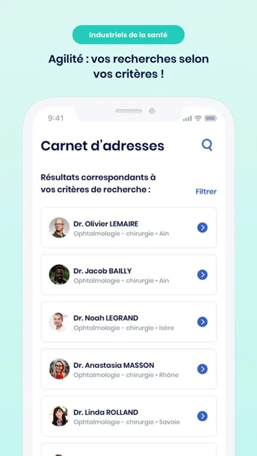 Trouvez le bon interlocuteur grâce à un système de filtres adaptés à votre profession.