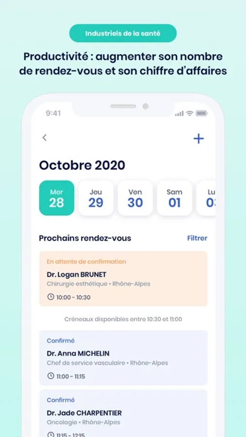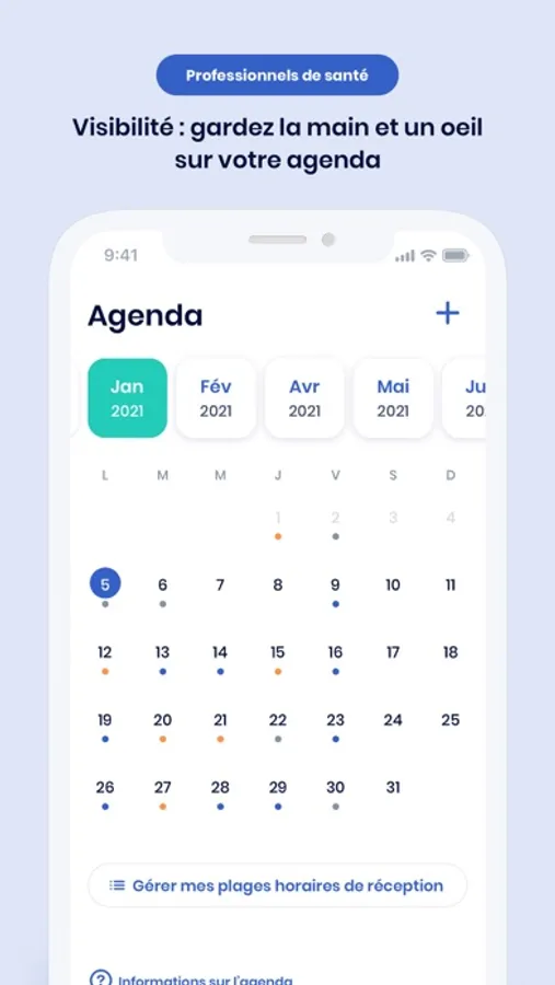 Grâce l’agenda, vous pourrez visualiser l’ensemble de votre journée de travail, vos rendez-vous pris ou en attente de confirmation.
