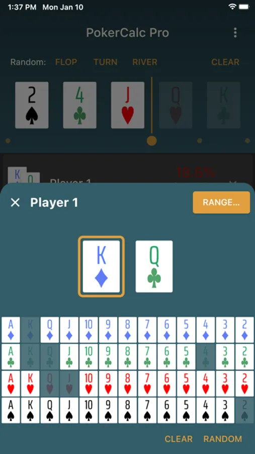 - Hand range library and selector tool allows for quick selection of most common ranges, as well as a growing library of predefined ranges.