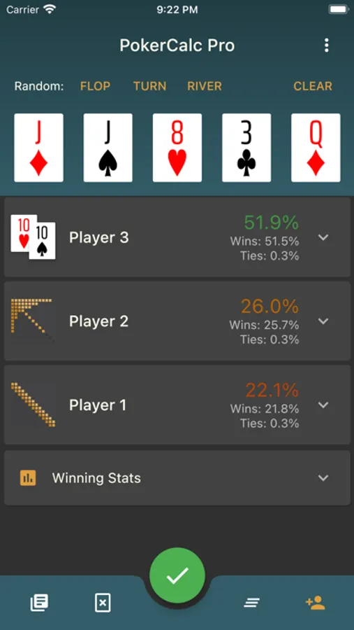 - Blazing fast automatic calculation, with little to no wait time to quickly see calculated odds and equity.