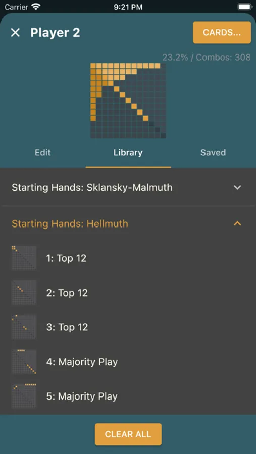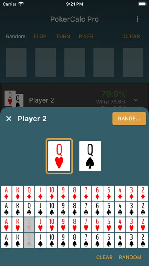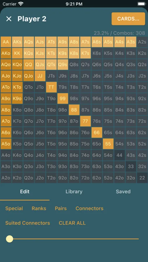 - Your own hand ranges can be saved and quickly recalled later.
