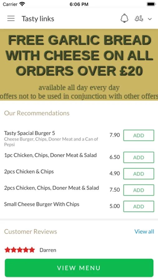 Here at Tasty links we are constantly striving to improve our service and quality in order to give our customers the very best experience. As a result, we are finally proud to unveil and introduce our latest improvement, our new online ordering App! You can now relax at home and order your favourite, freshly prepared meals from Tasty links, online. You can even pay online!