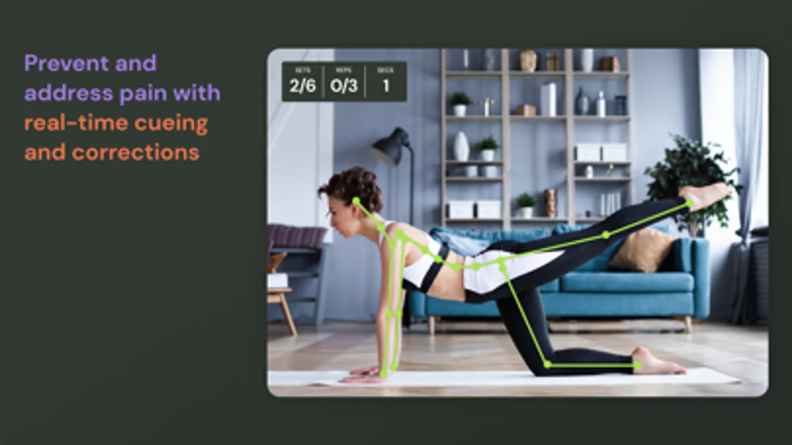 Get instant feedback in the app when you exercise. We utilize the latest vision-based AI technology to track your poses and movement and correct your exercises in real-time with visual and auditory cues.