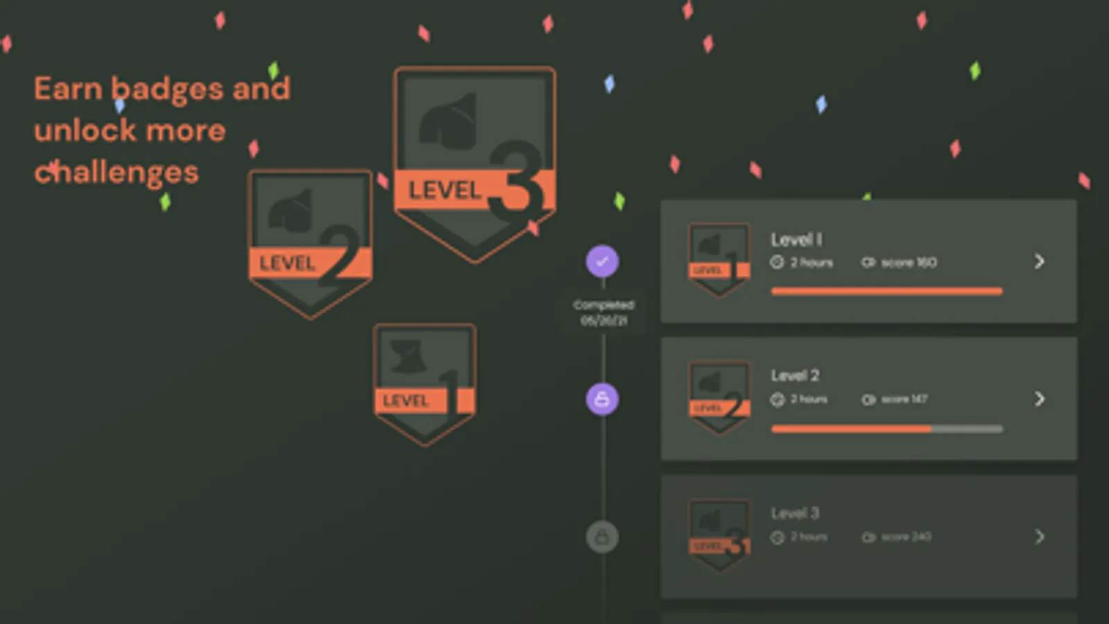Stay motivated by earning badges and unlocking new levels and exercises. Monitor your exercise patterns and score progression all in one place.