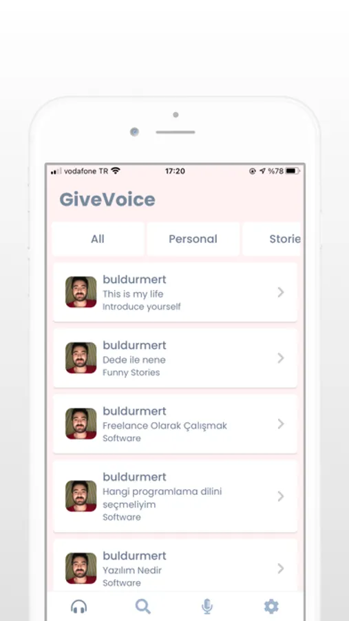 Give Voice allows people from all over the world to share their life stories or stories songs to themselves.