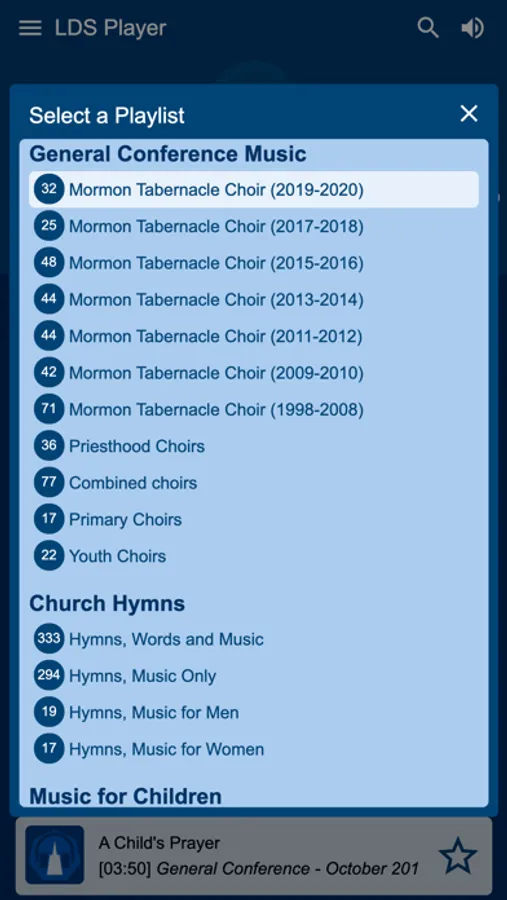 Play and listen to the online LDS Music Library collection from lds.org, including General Conference music (Mormon tabernacle choir), LDS Hymns and Children songs, arrangements, Submitted music, and Selected music topics.