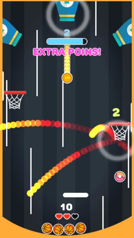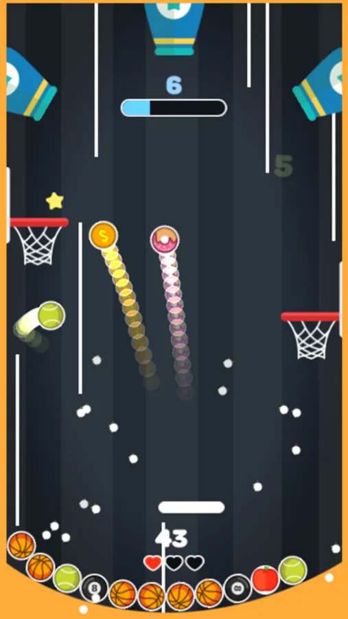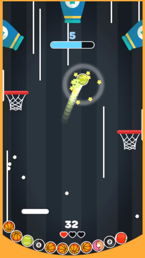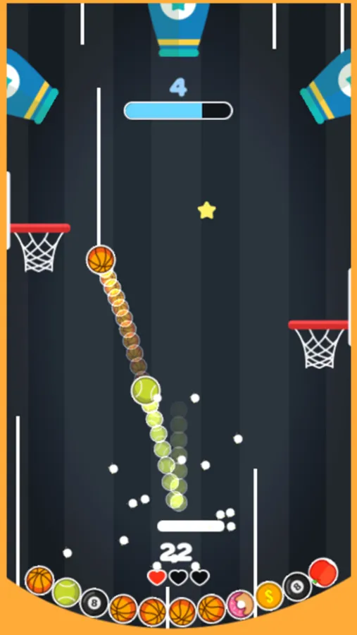In Bouncy Dunks you need bouncing the ball with moving paddle and throw it through basketball circle. Collect the stars which appears during playing and get 5 points extras . Don't let the balls fall down or you lose one life.