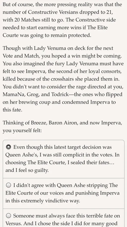 At the start of the VERSUS Trilogy, an unknown power imprisoned you on planet Versus, forcing you and dozens of other prisoners to vote for who will fight in deadly gladiatorial battles. Each prisoner has unique superpowers, but you started with just a single power: the ability to steal powers from others and absorb their memories.