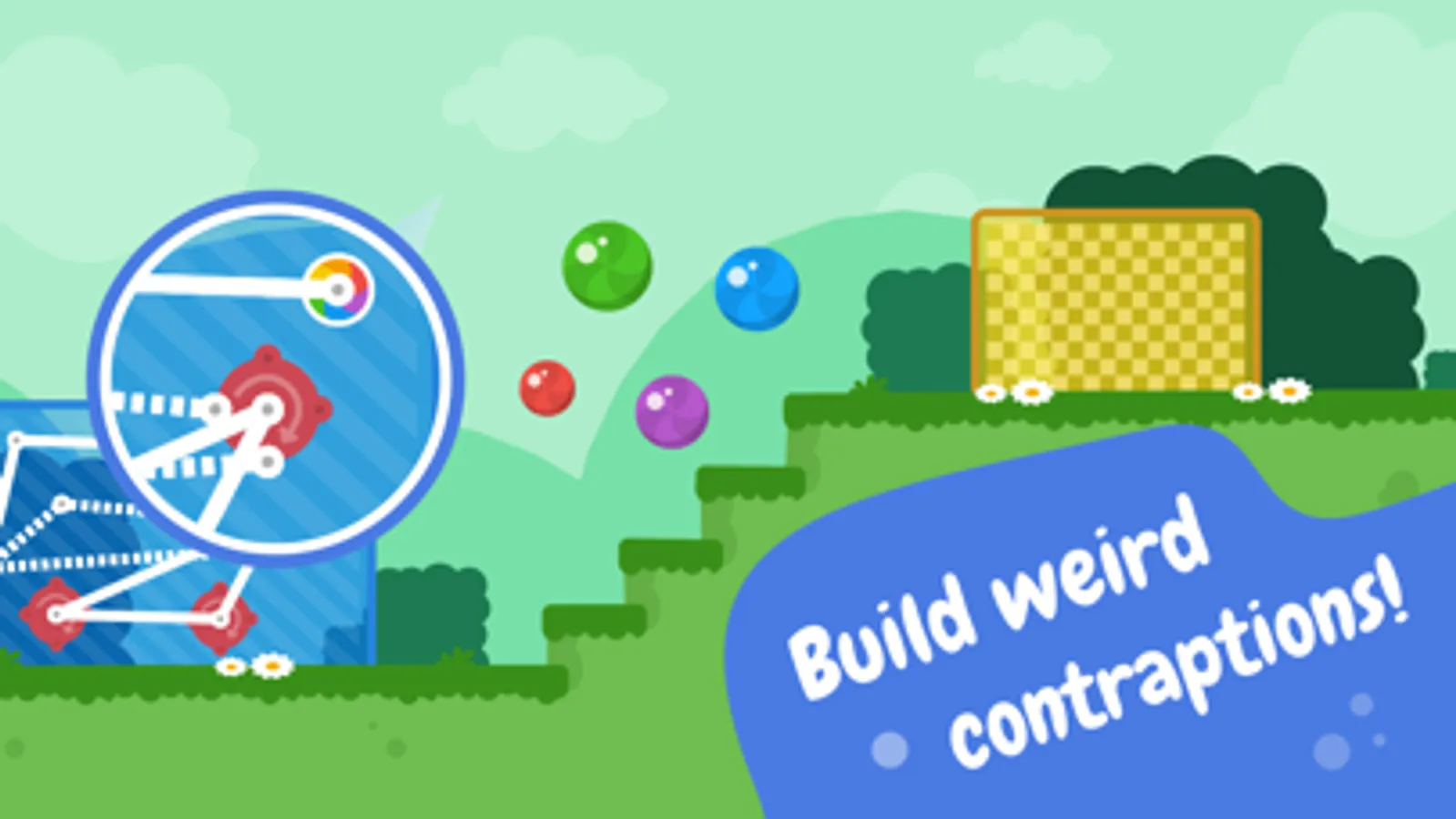 Fun little physics puzzler where your imagination is the only limit! There is no right or wrong way to solve the puzzles, you can build any contraption you want to beat the levels!