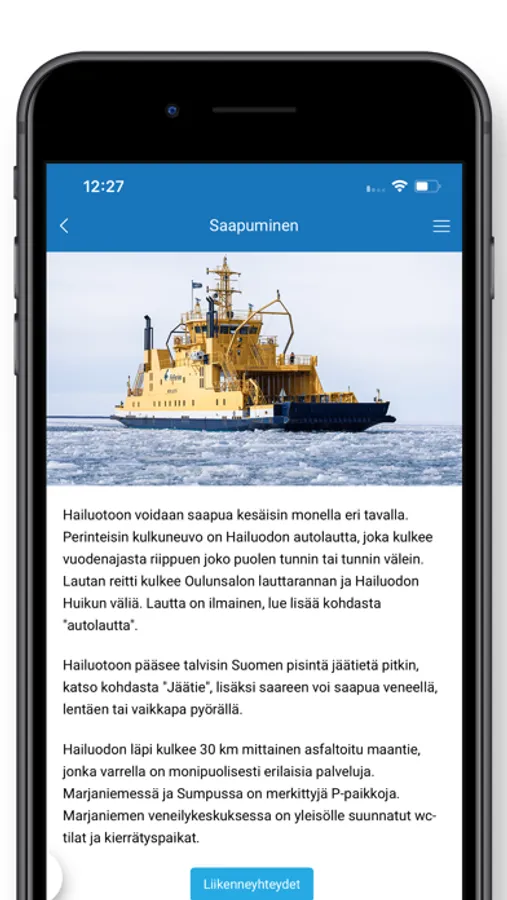 Hailuoto-mobiilisovellusta tullaan päivittämään jatkossa siten, että saat sen kautta aina ajankohtaiset tiedot ja uudet toiminnot käyttöösi!