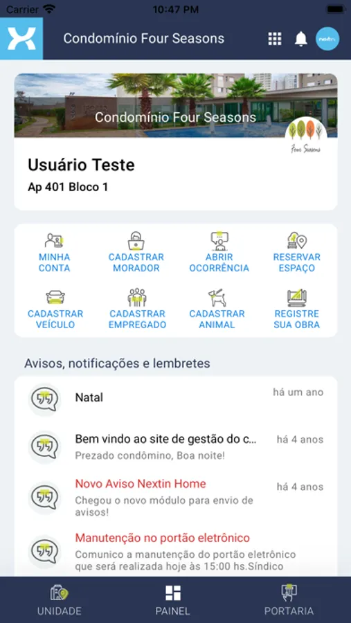 Nextin Home é a solução completa para o dia a dia dos condomínios com sistema, site e portaria. Nossa plataforma conta com mais de 30 funções para facilitar as ações dos moradores, porteiros e síndicos. Mais satisfação e agilidade para todos.