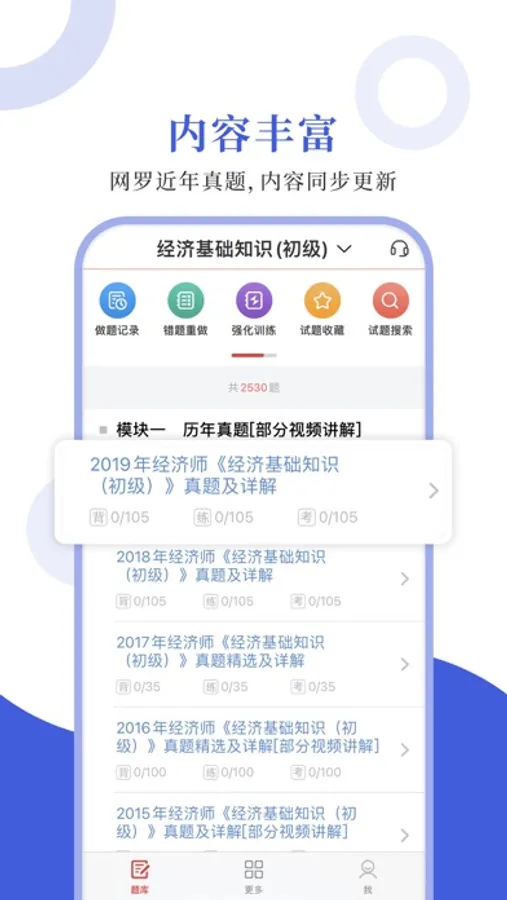 ②题量大,多个刷题板块,历年真题、章节习题、模拟试题;