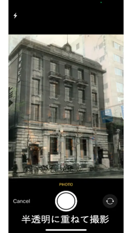 iPhoneのカメラに写真を重ねて撮影できるカメラ。
