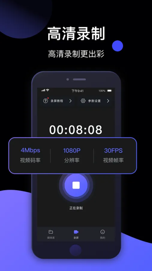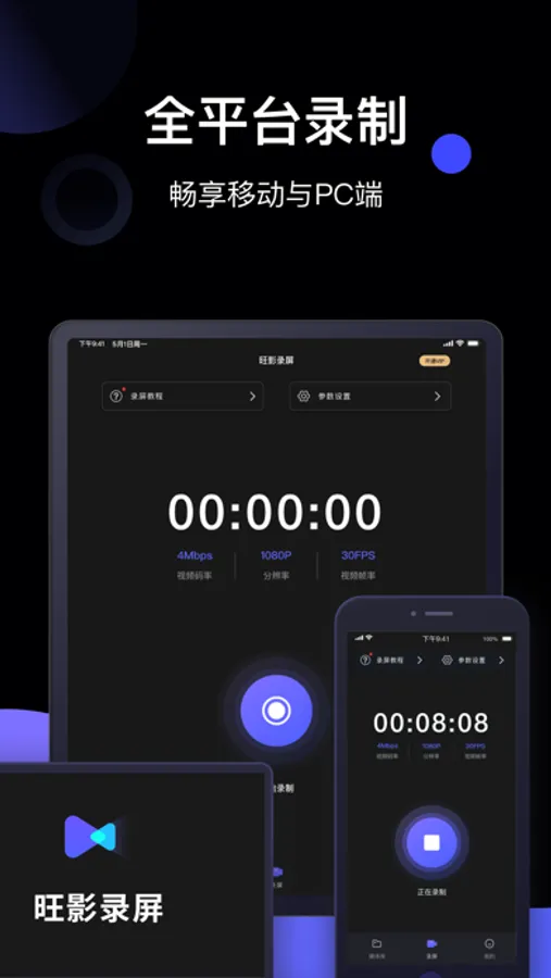 旺影录屏是一款稳定强大的手机屏幕录制软件,你可以通过这款软件录制超清视频,并设置分辨率、码率、帧率等参数,轻松记录课程、游戏、娱乐的精彩瞬间。
