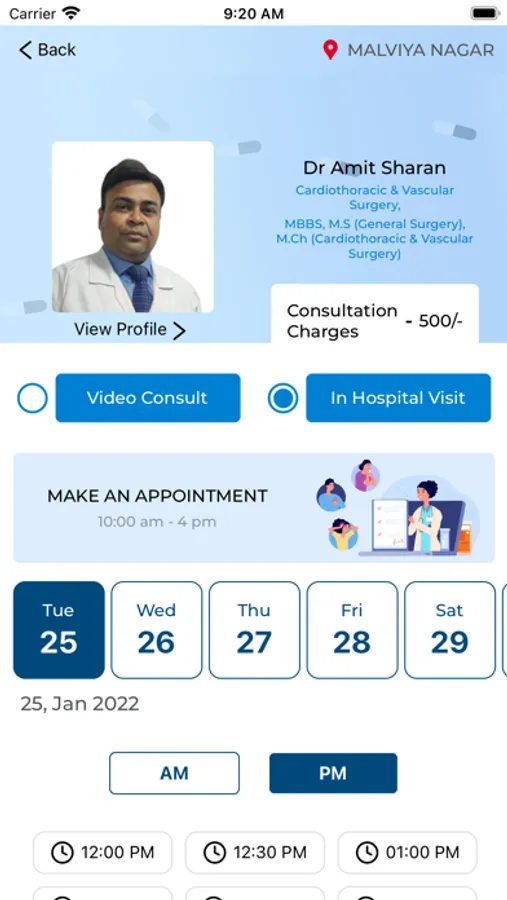 After choosing the relevant department, you can fix an appointment with the doctor as per your convenience and can receive a prescription. You can also share your prior medical history and prescriptions and can check for other previous appointments made through the app.
