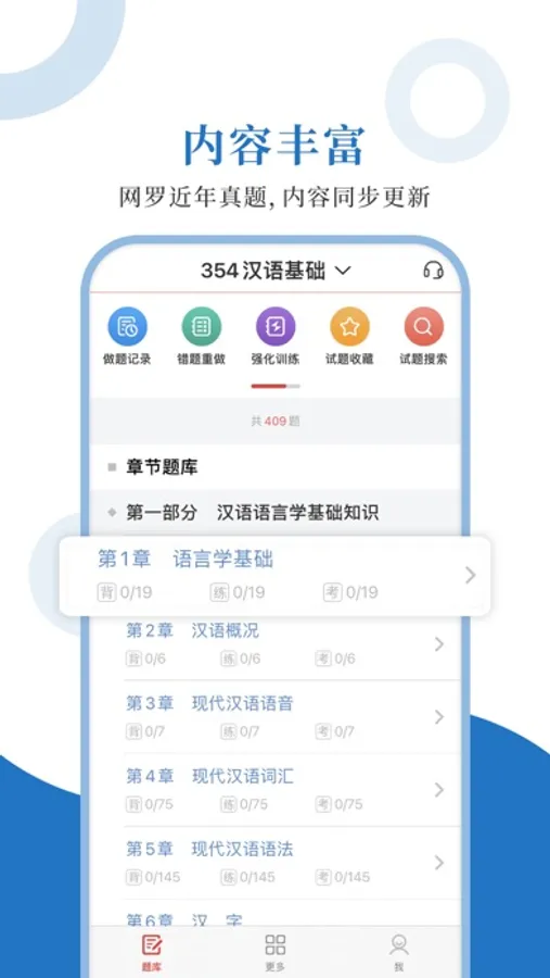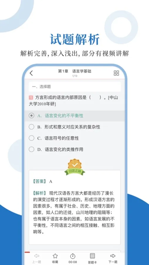 专为汉语国际教育硕士考试精心准备的考试配套题库,每一道试题都有答案解析,为考试提供了充分的复习准备,可随时随地学习练习,支持手机、平板多端同时使用。
