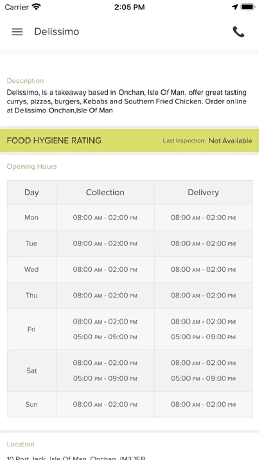 Order food online in Onchan! Its so easy to use fast and convenient. Try our new online app which contains our entire takeaway menu. The Delissimo is located in Onchan Isle Of Man. You can now order online all your favourite dishes and many more delicious options and have them delivered straight to your door in no time at all. Here at Delissimo we are constantly striving to improve our service and quality in order to give our customers the very best experience. As a result we are finally proud to unveil and introduce our latest improvement our new online ordering app! You can now relax at home and order your favourite freshly prepared meals from Delissimo online. You can even pay online