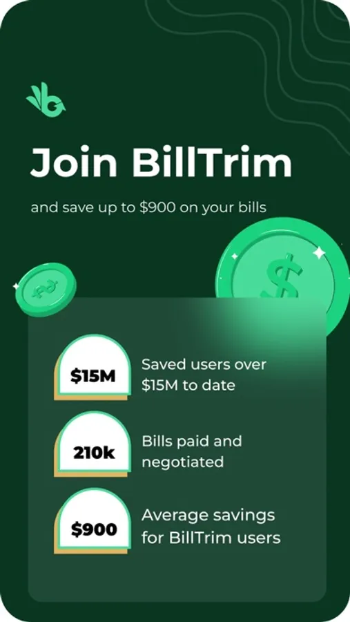 Bill payment: BillTrim pays your bills automatically, making payment simple and hassle-free.