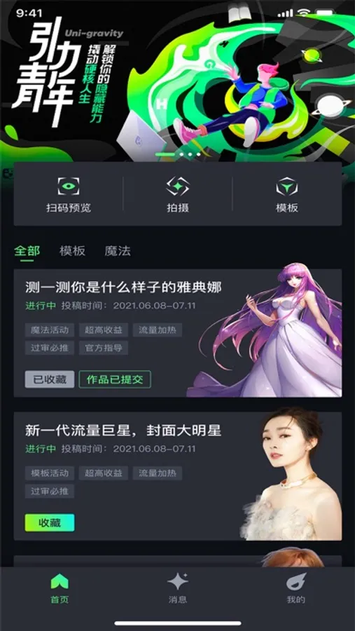 腾讯特效达人是移动端的特效演示应用。特效包含美颜美型美妆等多达几十项目的面部美化功能之外,还可以使用丰富的魔法特效拍摄短视频,大量剪辑模板快速生成短片。可以很方便扫码体验特效素材。