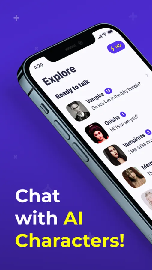 - Chat with AI-powered virtual characters, from real people to fictional favorites.