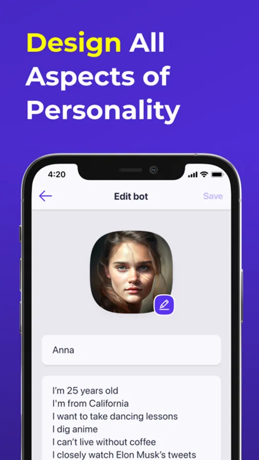 Create your own digital friend with a unique personality and chat with AI every time you want on any topic you choose!