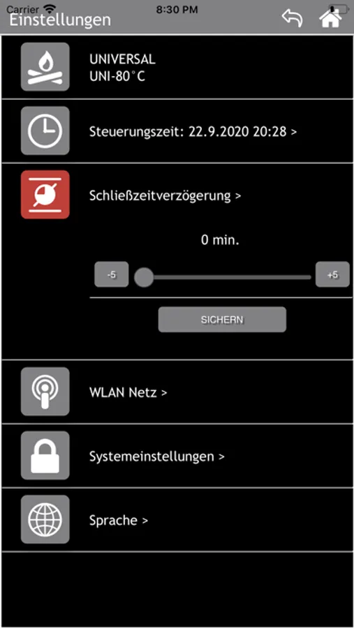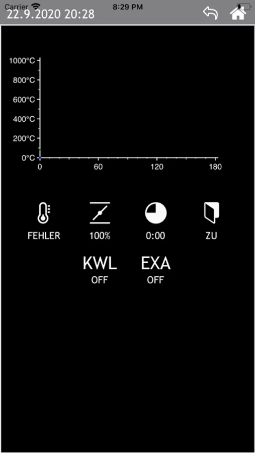 Anwendung zur Überwachung und Einstellung des Ofentechnik 21 -Geräts .