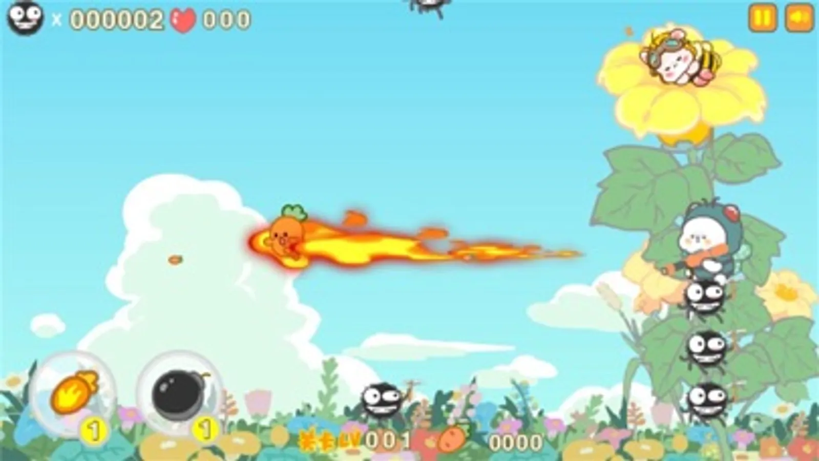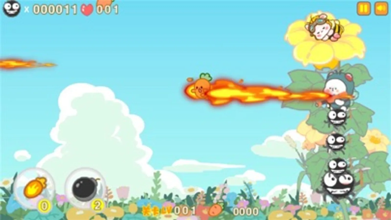 整个游戏采用射击塔防的玩法,玩家需要通过操作胖熊蜂(懒熊熊cos)上下移动来获得更佳的位置来攻击目标。还需要灵活搭配各种技能(胡萝卜)(炸弹)重创目标。击退一定数量的目标会出现巨大的痴线蜘蛛大BOSS,打败它后,关卡会自动升级来提升难度同时获得更多分数奖励。