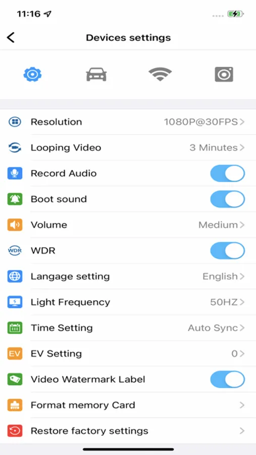 The Yixing escort app is an app used in conjunction with the dash cam. The app connects the recorder through WiFi, which allows video playback directly on the mobile phone, as well as related settings for the recorder.