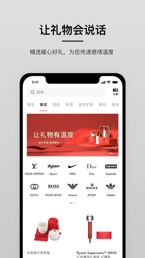 有礼家用时三年建立精品供应链,先后与戴森、BOSS、Burberry、Kenzo、Coach、双立人、海尔、海信、等国内外一线品牌达成战略合作,所有礼物均为官方正品,符合国家三包法。