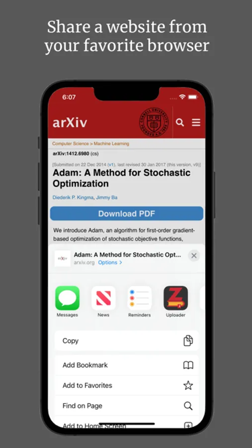 Directly paste a page URL into the Uploader-for-Zotero search box or share a webpage or PDF with Uploader-for-Zotero. We take care of the rest.