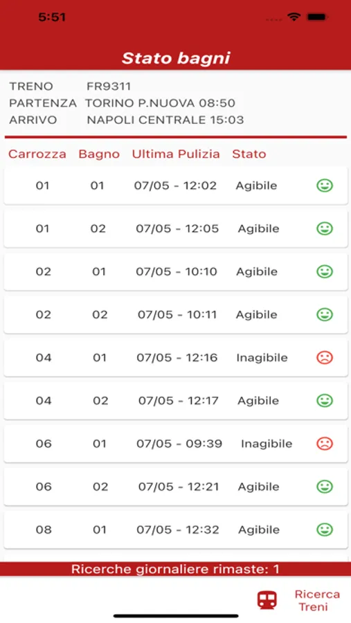 App intended for commuter travelers throughout the country who wish to know the data and daily data of the last sanitation intervention carried out on railway carriages.