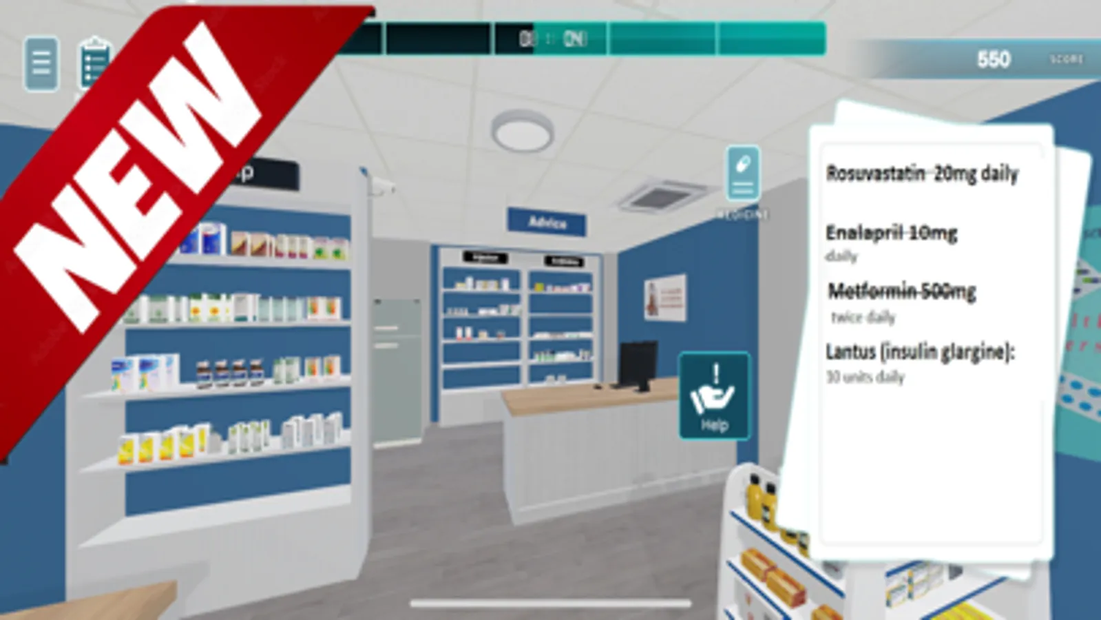 • The Rx mode provides you with real prescriptions with marketed drugs and wonderful challenges while collecting the medications from the 3d pharmacy.