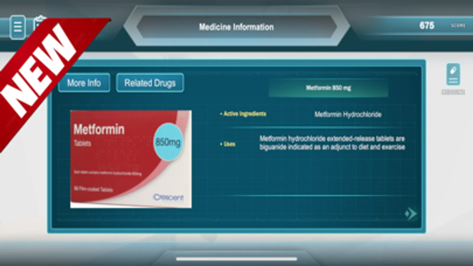 • Reading the drug info will increase your score and your grade in the end of the game.