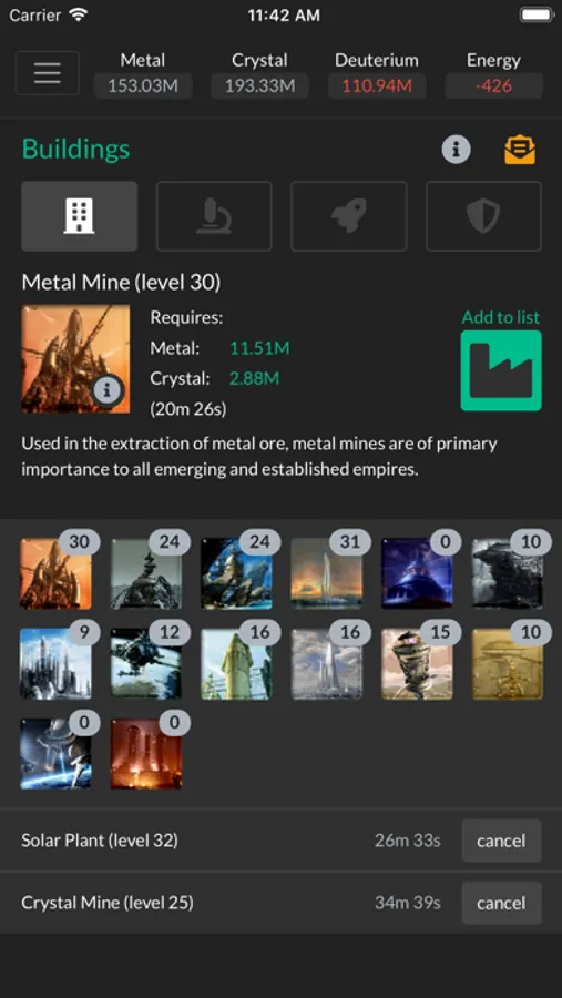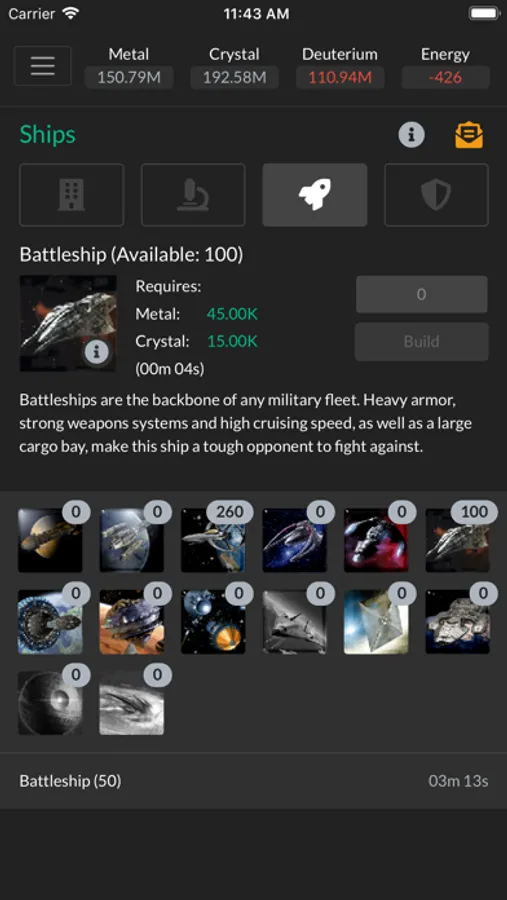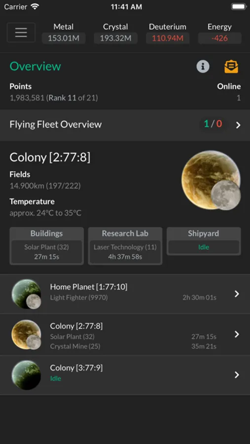 In this resource management game you'll colonize planets, build resource facilities, research new technologies, build defenses and fleets of ships that you can use to conquer your enemies. Join an alliance for learning, cooperative attacks and defense missions and to socialize with friends.