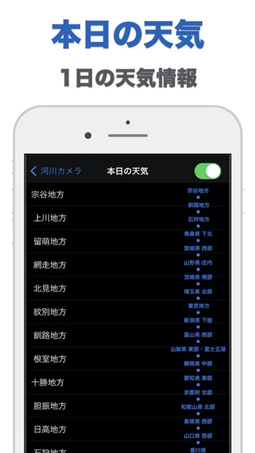・現在地の県名を取得し、天気予報、週間天気予報、気象警報注意報の詳細などへの自分の地域の情報に簡単にアクセスできる。