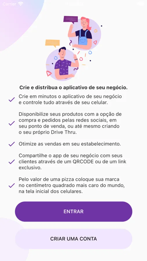Compartilhe o app de seu negócio com seus clientes através de um QRCODE ou de um link exclusivo.