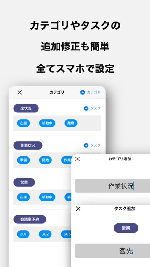 あらゆるシーンで活用できるように、カテゴリやタスクを自由に作成できるようにしてあります。使い方は自由です。