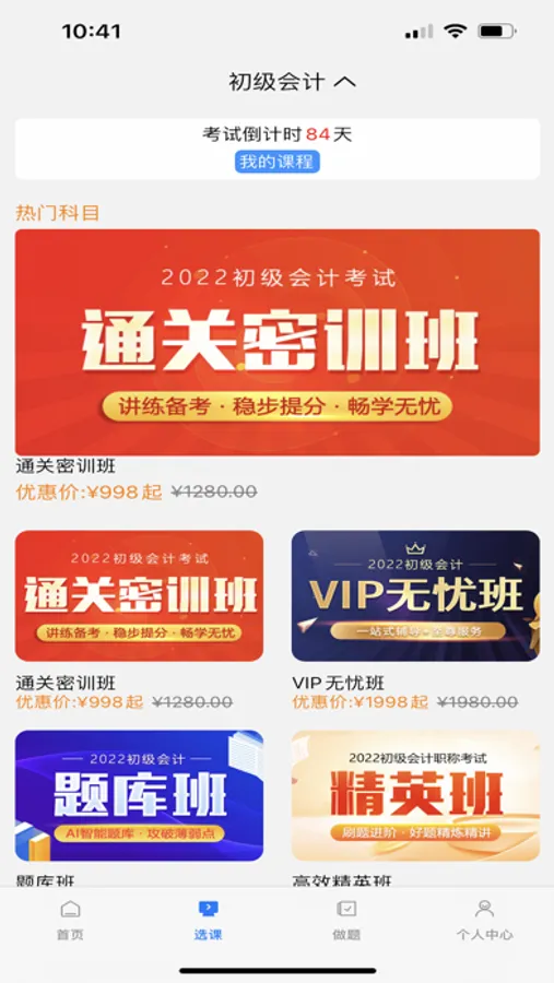 这里有全新的各类职业(财会类、卫生类、建筑类、学力提升等)考试课程,备考秘籍、免费题库学习、考前冲刺、视频讲解,每天半小时学习,考试更轻松!