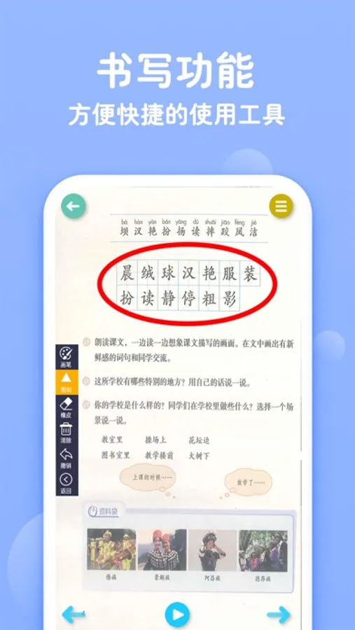 【4】画笔功能,全屏涂鸦让学习更加的有趣让学习更加高效率。完全同步最新发行教材,绝无缺漏页现象。