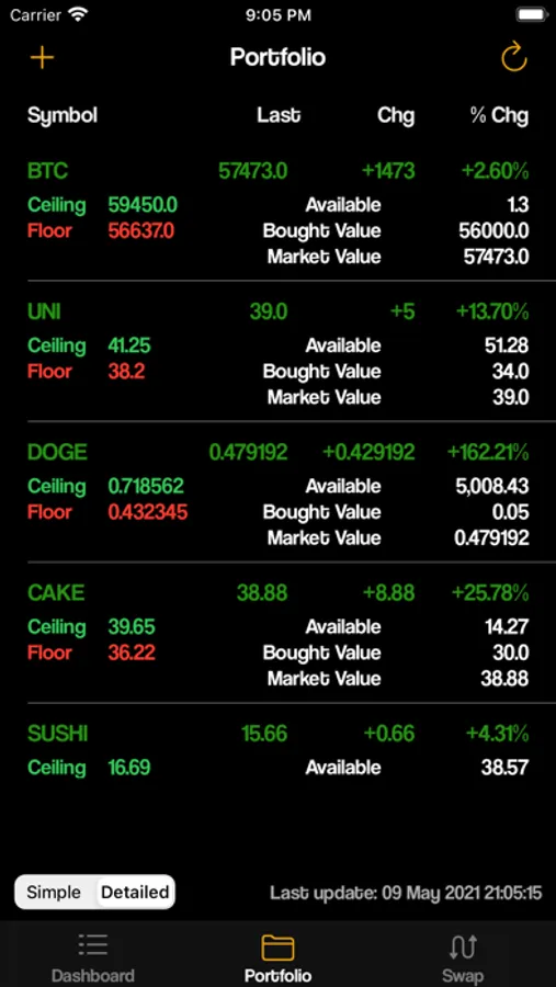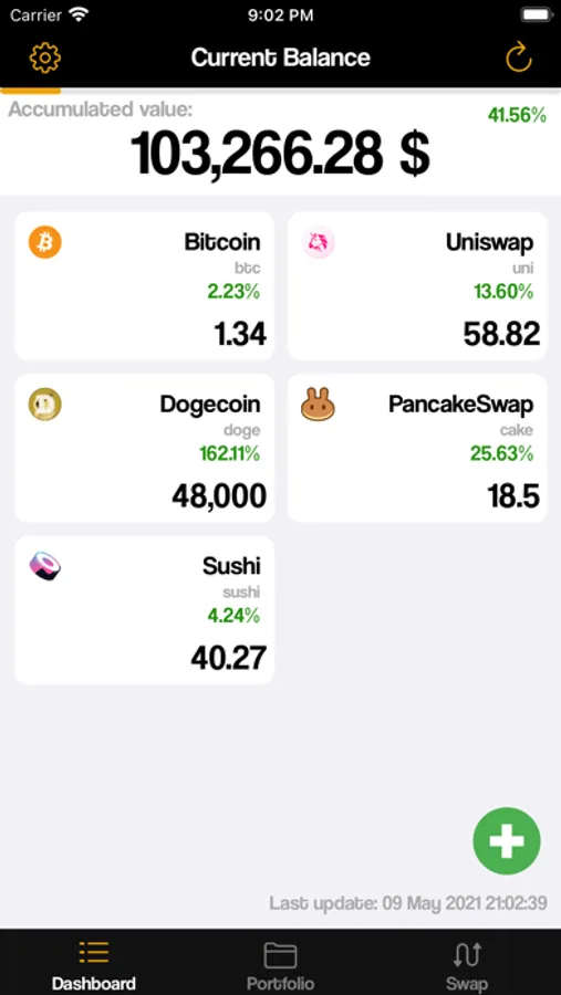 Build your own portfolio (no registration required), quickly jump on the train to the moon. Keep track of all the change of your crypto portfolios, watch trends, live exchanges and introducing currency swap system.