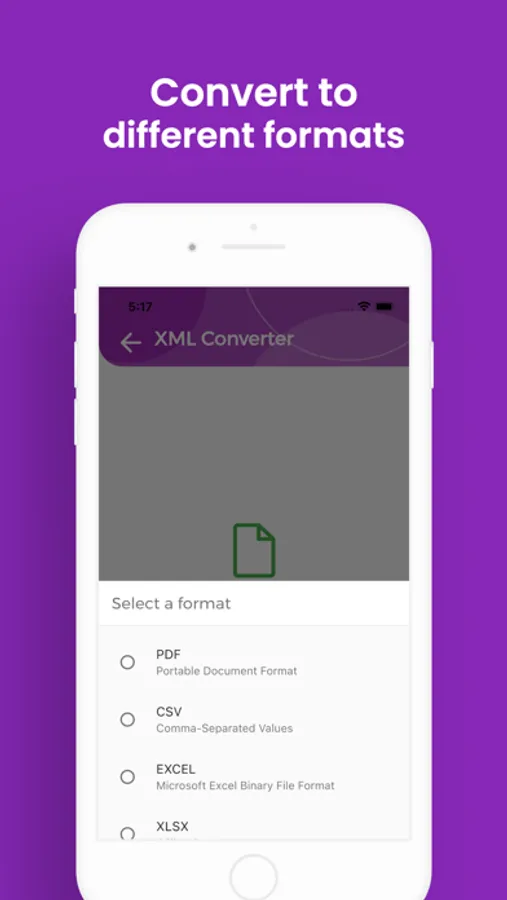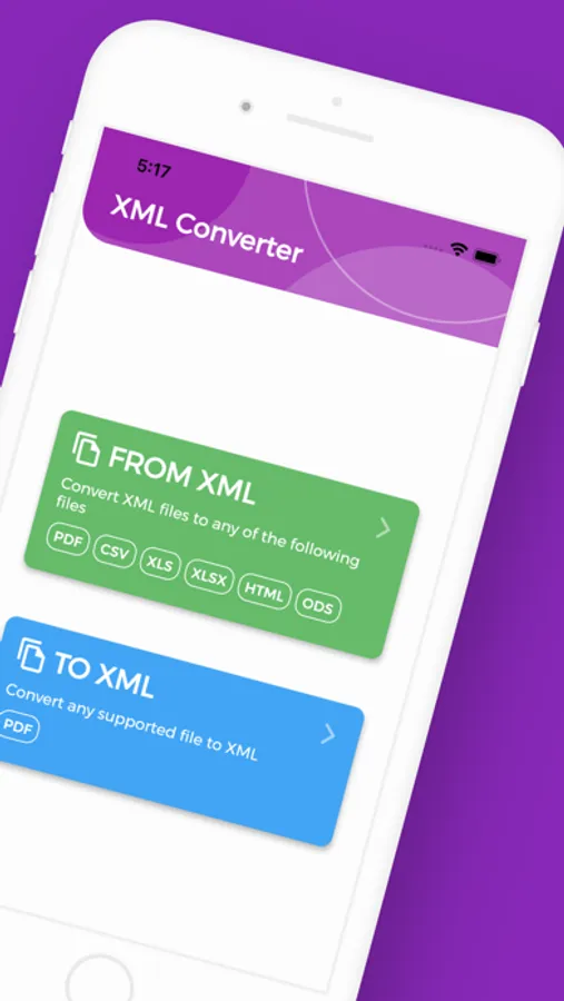 This conversion application allows you to convert any XML file to other files like PDF, EXCEL, XLSX, HTML, ODS, CSV, it can also convert other files to XML.