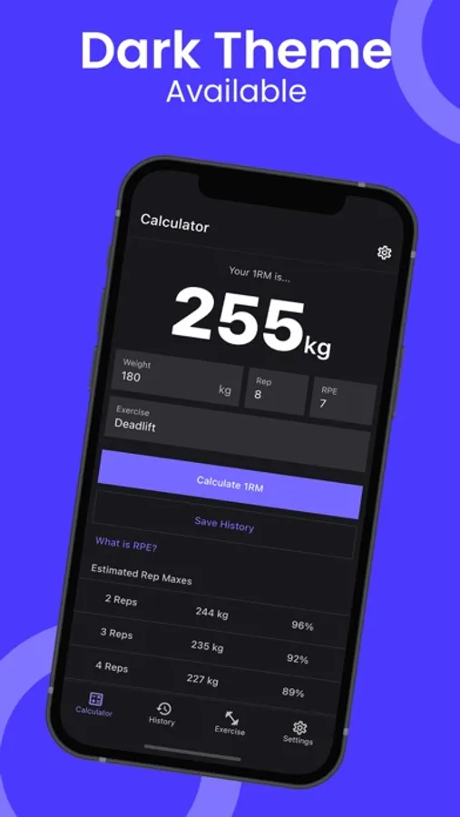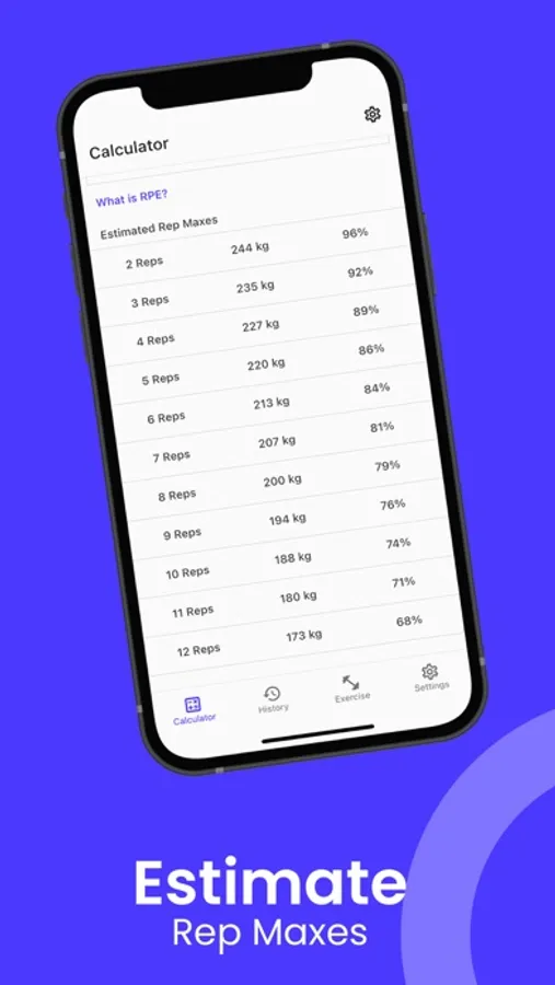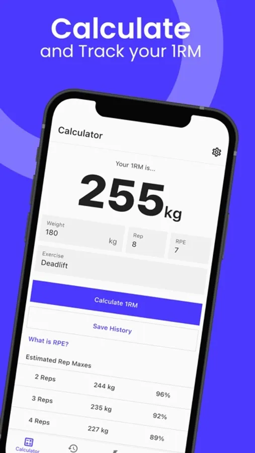 An easy-to-use 1RM calculation app that lets you use RPE and track your 1RM history.