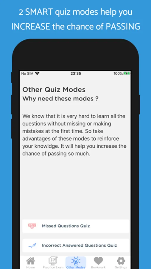 4.Examination mode will help you take test like a real exam. So you will be more confident.