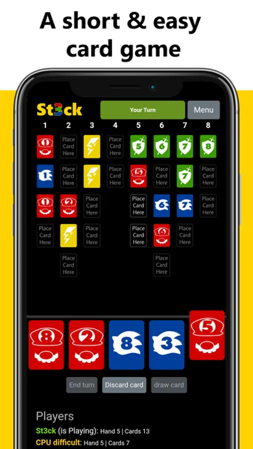 Try to clear your deck as fast as possible, who ever clears it first wins the game. A game takes around 5 minutes!