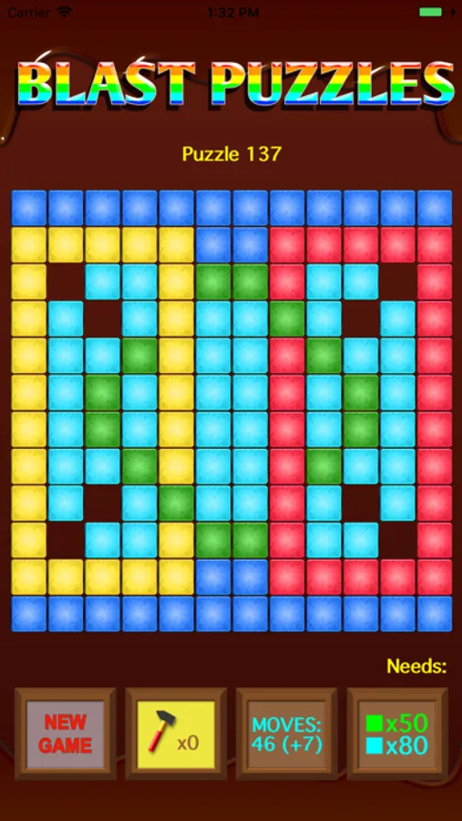 • To solve puzzles and unlock new levels - collect a designated amount of blocks in appointed colors. You have a limited amount of moves per level.